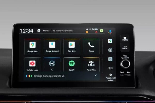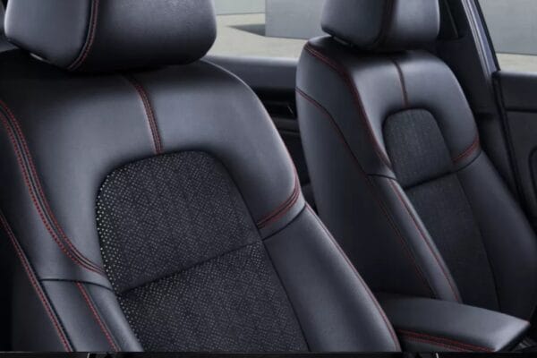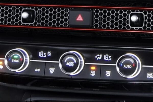 Pada bagian depan kabin, aksen honeycomb berbahan logam yang membentang pada dashboard meningkatkan kesan mewah yang berfungsi sebagai garis pemisah visual antara 9” Advanced Capacitive Touchscreen Display Audio dan panel kontrol A/C yang berubah menjadi Dual Zone Auto A/C yang berfungsi sebagai pengaturan suhu antara pengendara dan penumpang depan secara terpisah.