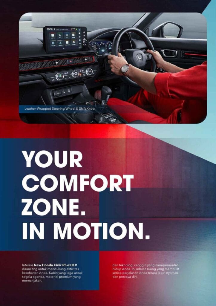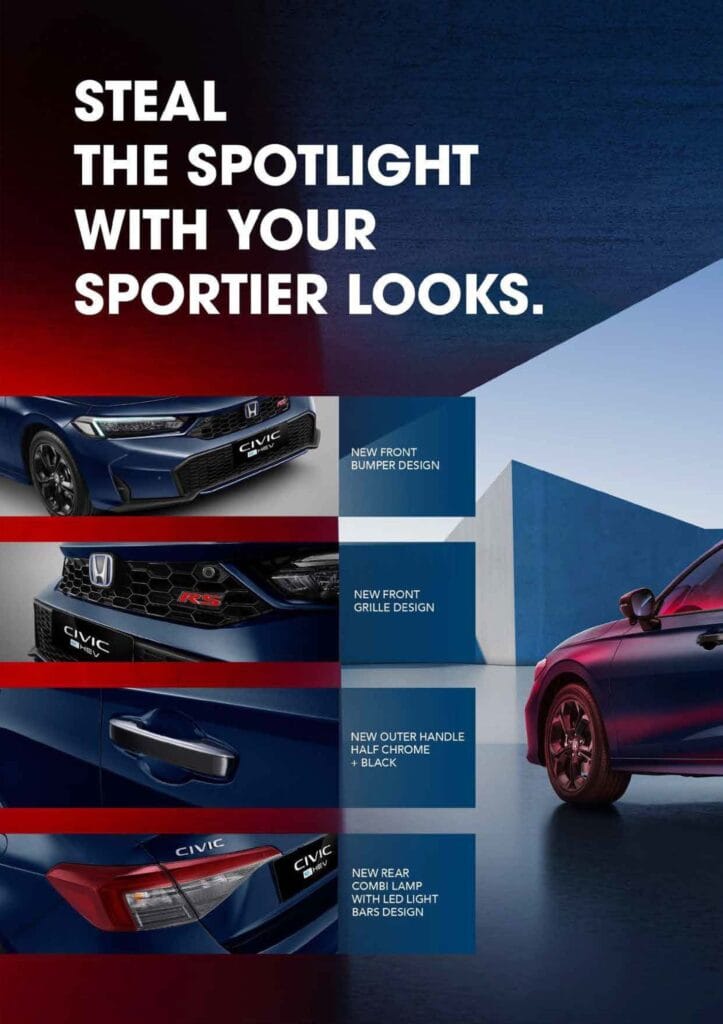 Rasakan pengalaman yang memuaskan setiap kali menyalakan mesin dan berakselerasi dengan All New Honda Civic. Saatnya menjadi pusat perhatian di setiap momen berkendara Anda dengan penampilan terbaru. Dengan desain modern tanpa menghilangkan DNA sporty.