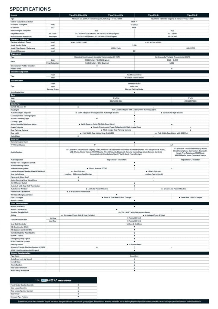| 1.5 RS e: HE V** | IDR 494.900.000 |