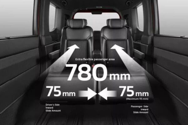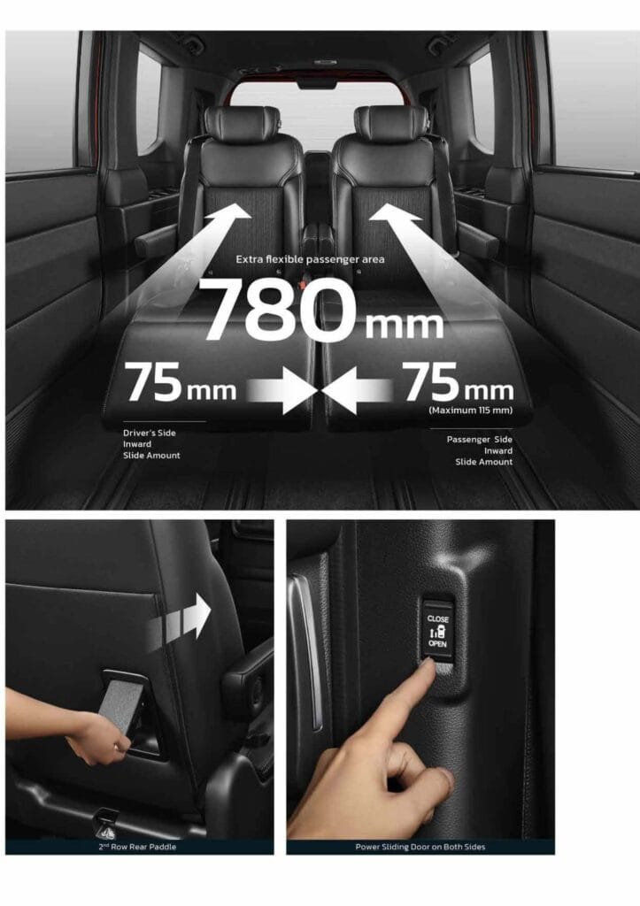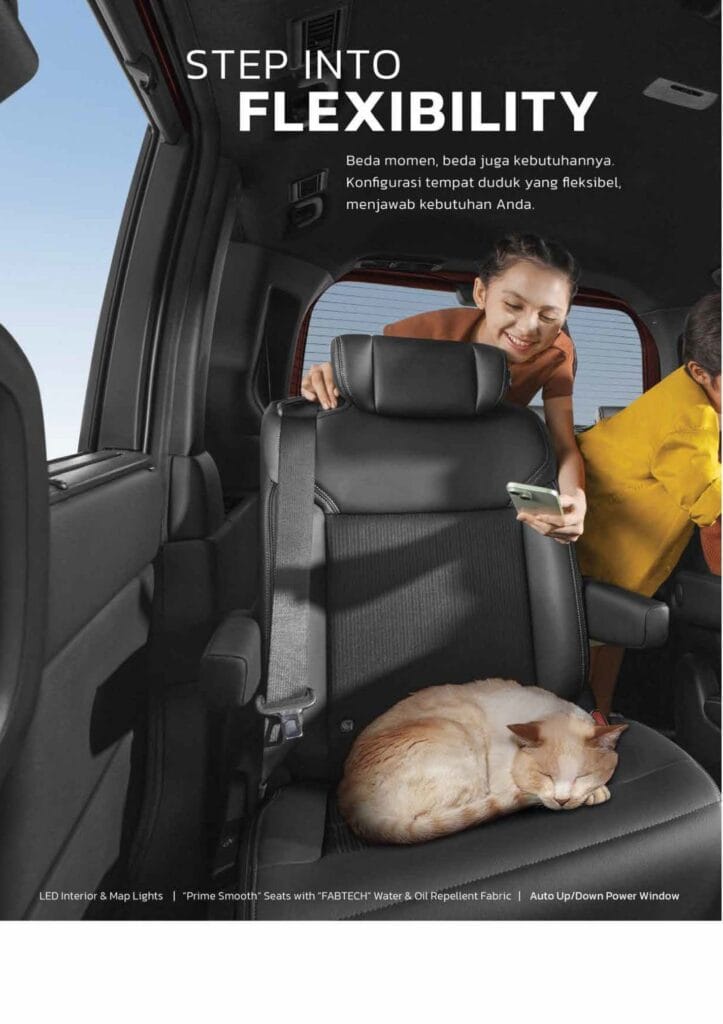 Kursi baris kedua yang bisa diatur dan digeser, serta kabin luas yang mudah disesuaikan.