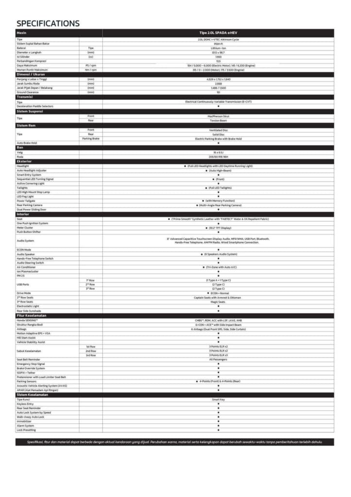 | 1.5 RS e: HE V** | IDR 494.900.000 |